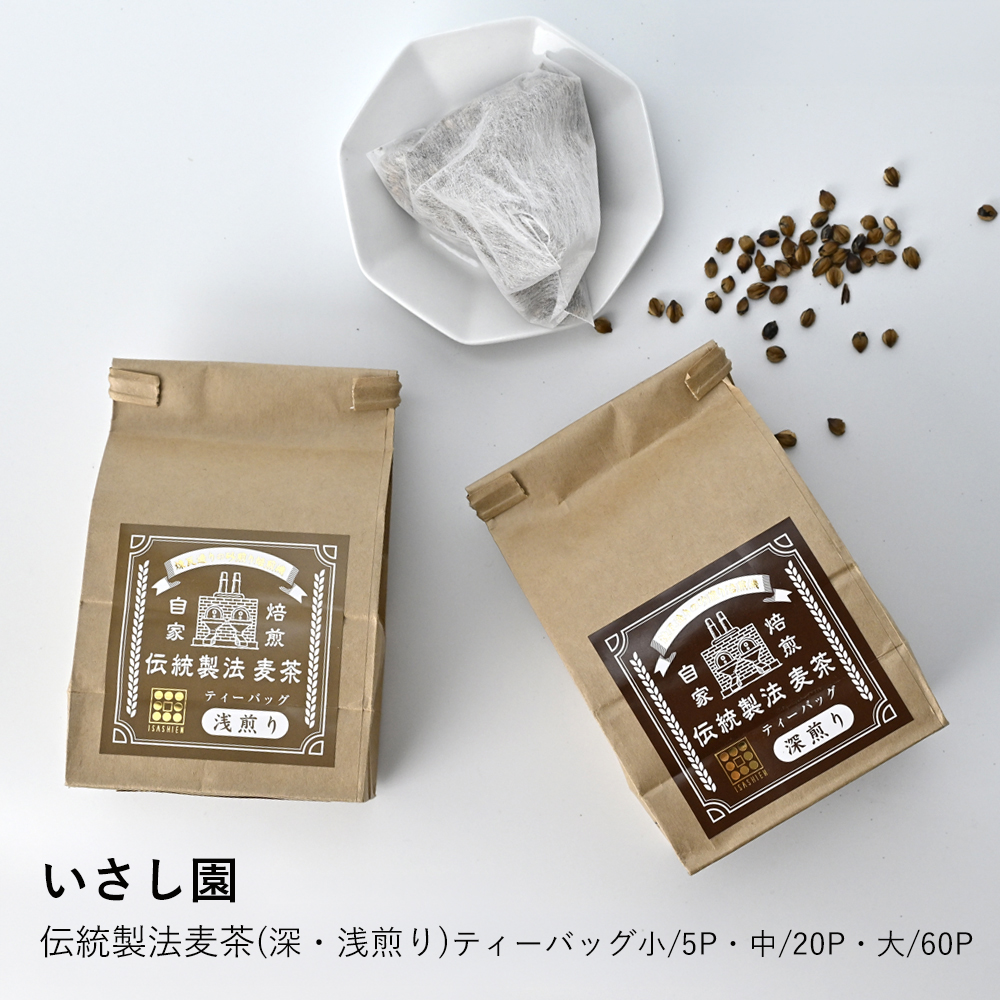 【いさし園】伝統製法麦茶(深・浅煎り)ティーバッグ小/5P・中/20P・大/60P