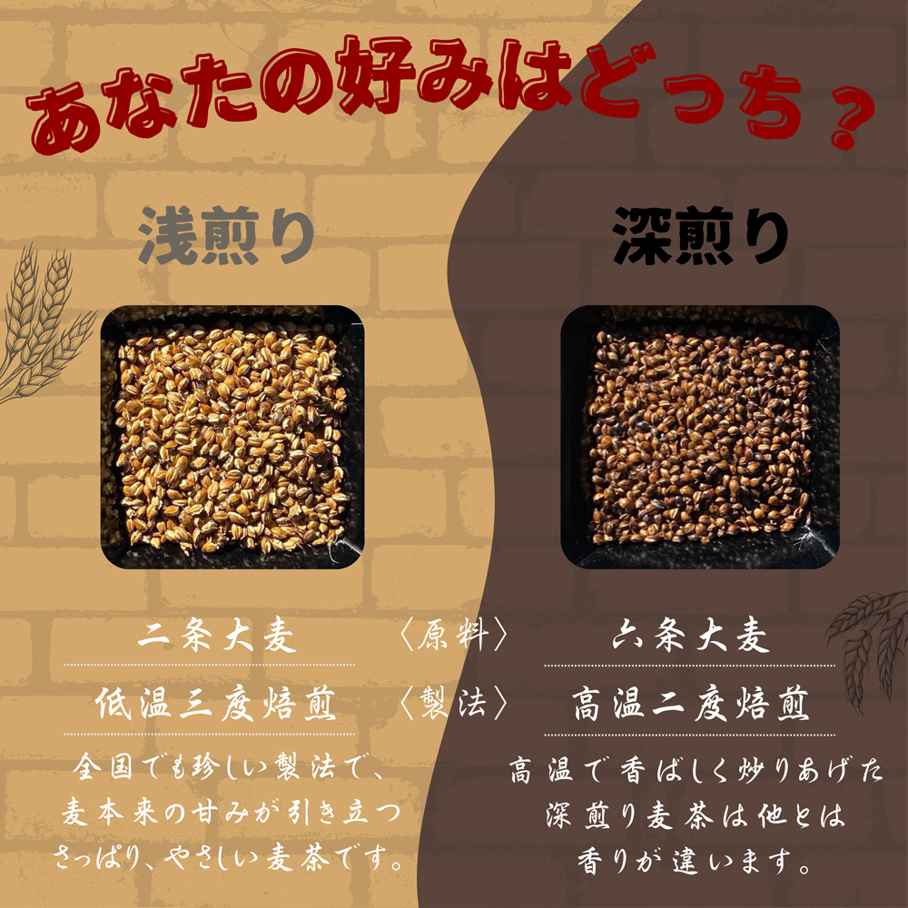 味わいは、大麦の品種と焙煎方法を変えた2種類をご用意しました。