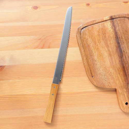 かつて「刀都」と呼ばれていた岐阜県関市にある、志津刃物製作所。鎌倉時代から受け継がれる“関の刃物づくり”の伝統を守りながら、高い技術を持つ刃物職人が、包丁などの家庭用の刃物をつくっています。 morinokiは、ケヤキの天然素材をハンドルに使った、ナチュラルであたたかみのあるシリーズです。優れた技術をもつ刃物職人がつくるパン切りの切れ味は、まさに圧巻の一言。パン屑がでることもなくスッとスムーズに刃が入り気持ちよくカットすることができます。