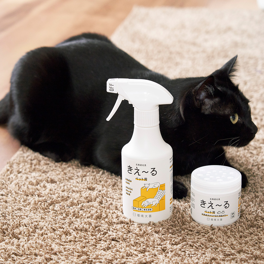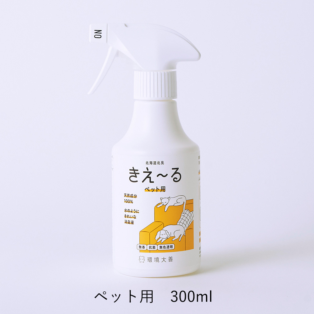 北海道北見市から届いた、環境にも人にも、そして大切なペットにも優しいバイオ消臭剤「きえ~る」シリーズ。未利用バイオマス(牛の尿)を乳酸菌などの環境微生物群で発酵・培養した「善玉活性水」から作られた、100%天然成分の消臭アイテムです。