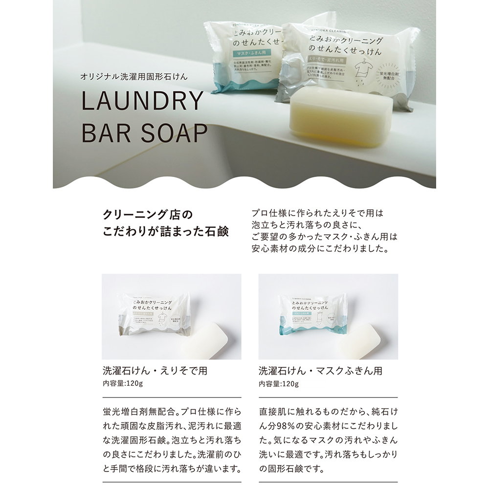 【とみおかクリーニング】洗濯石けん・えりそで用/マスクふきん用