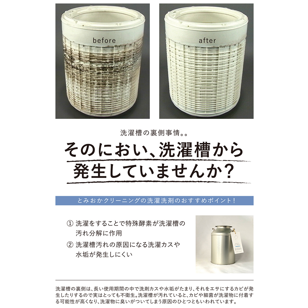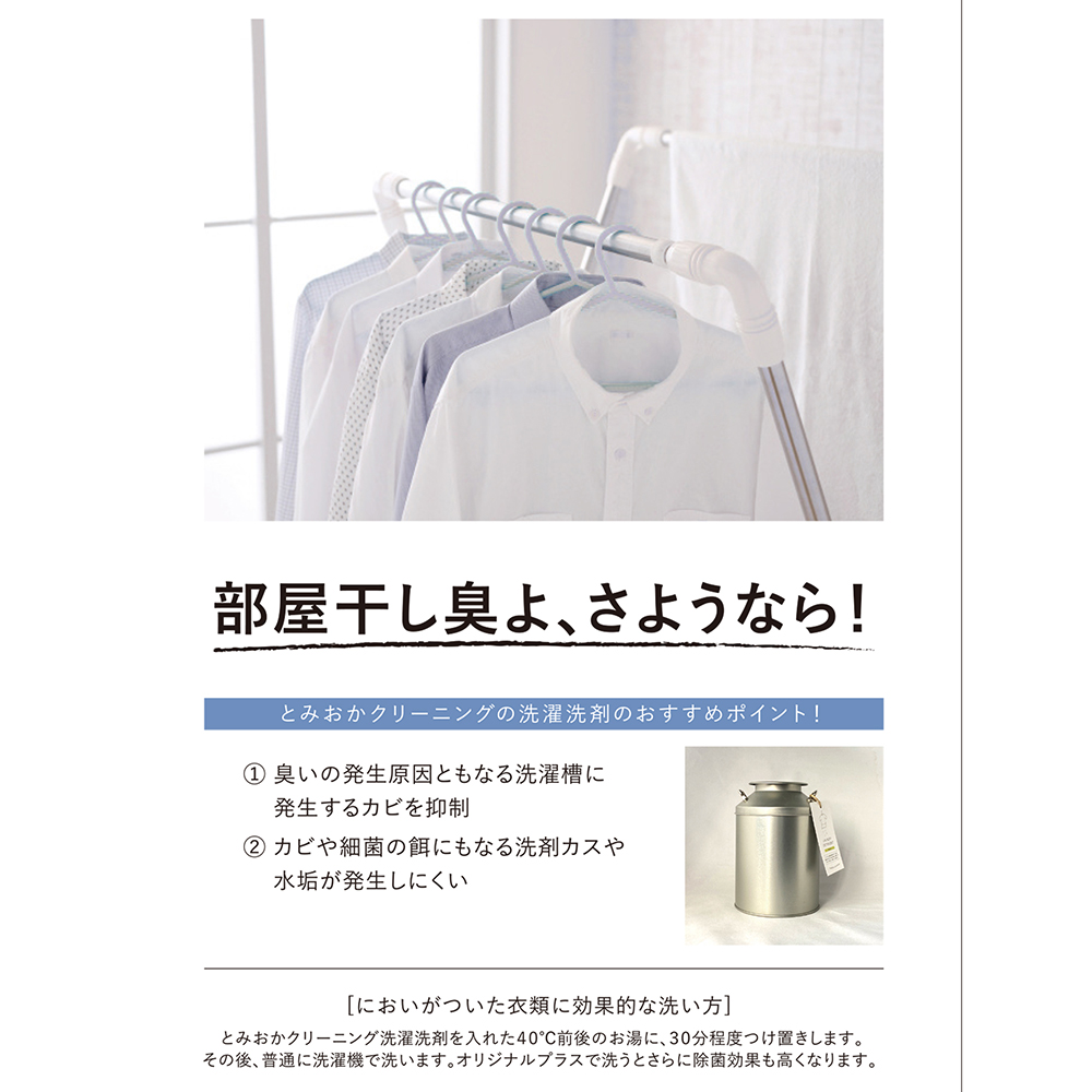 プロのクリーニング現場の知恵から生まれた「とみおかクリーニング」の粉末洗剤は、毎日のお洗濯を根本から変えてくれるアイテムです。