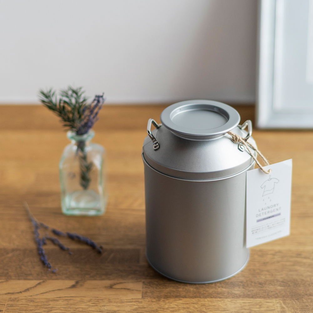可愛らしいミルク缶入りのパッケージは、ランドリールームに出しっぱなしにしても絵になる佇まい。すくうのが楽しくなる専用のステンレス製計量スコップ付きで、毎日の家事にささやかなときめきを添えてくれます。