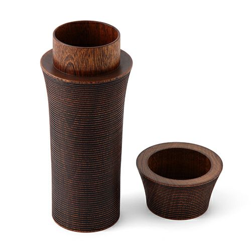 我戸幹男商店の製品は、山中漆器が誇る職人の技術と、デザイナーのコラボーレションによって作り出されています。芸術性の高さと実用性を兼ね備えたデザインが特徴で、熟練した轆轤職人による精巧な加工が、凜としたたたずまいを生み出しています。素材はすべて国産材を使い、国内で加工・製造されています。