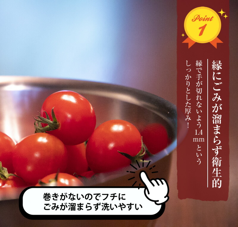 また、縁で手が切れないよう厚さもしっかり1.4mmあります。
