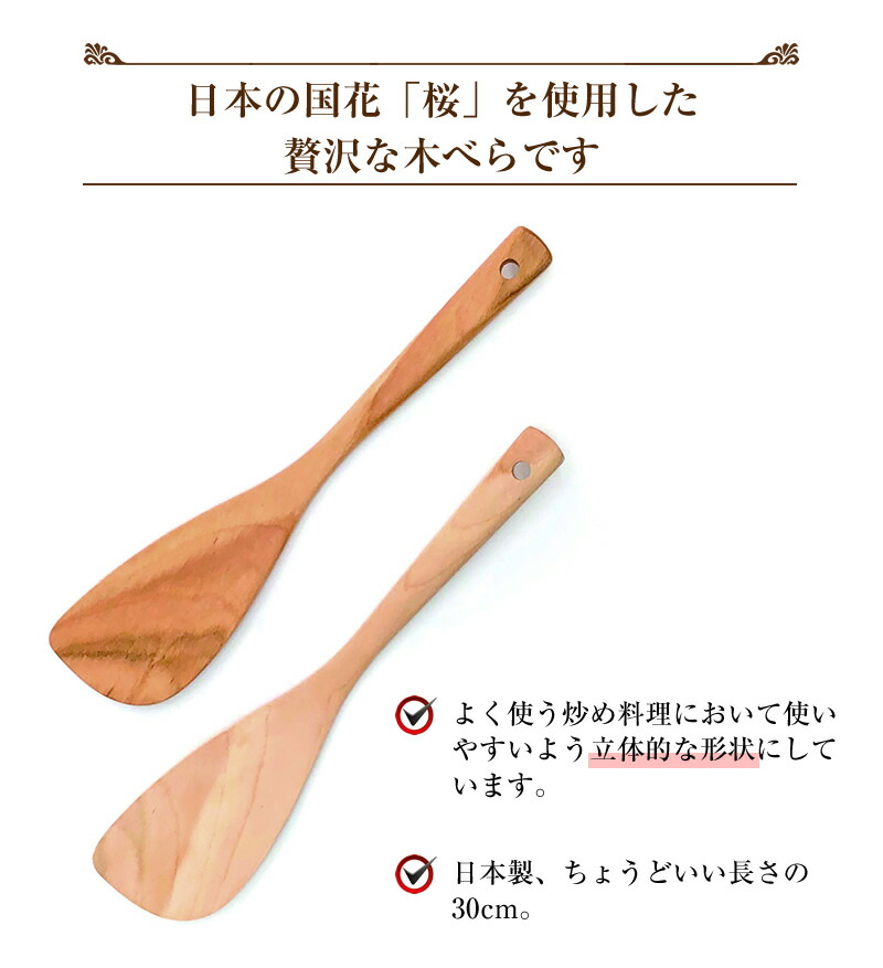 木べら | 京都活具 | 山桜 30cm 木製 天然木 ヘラ 調理器具 キッチンツール フライパン 傷つけない 日本製 おしゃれ ギフト プレゼント キッチン用品便利グッズ キッチン用品・調理器具 キッチン用品