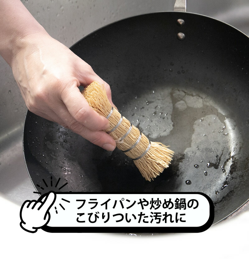 ささら | 京都活具 | カルカヤ フライパン 最適 たわし ブラシ 中華鍋洗い 鉄 クリーナー キッチン用品 調理器具 日本製 おしゃれ ギフト プレゼント キッチン用品便利グッズ取扱説明書