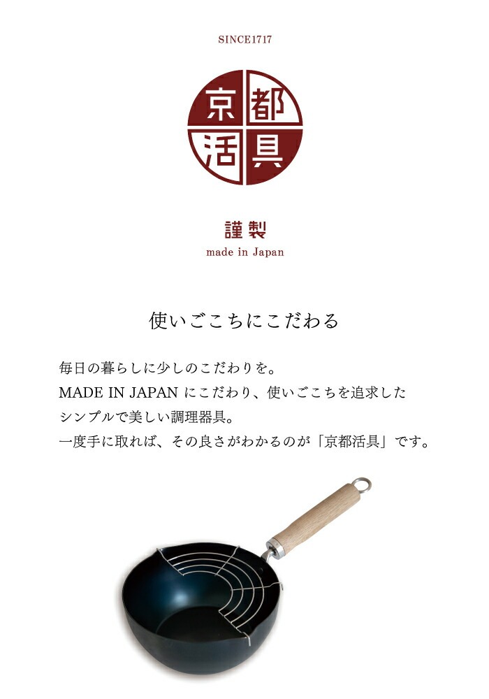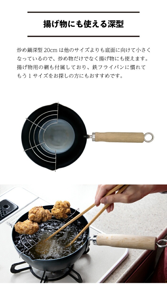 炒め鍋 | 京都活具 | 深型 20cm 網付 鉄フライパン IH対応 ガス火対応 中華鍋 天ぷら鍋 揚げ物 日本製 おしゃれ ギフト プレゼント取扱説明書