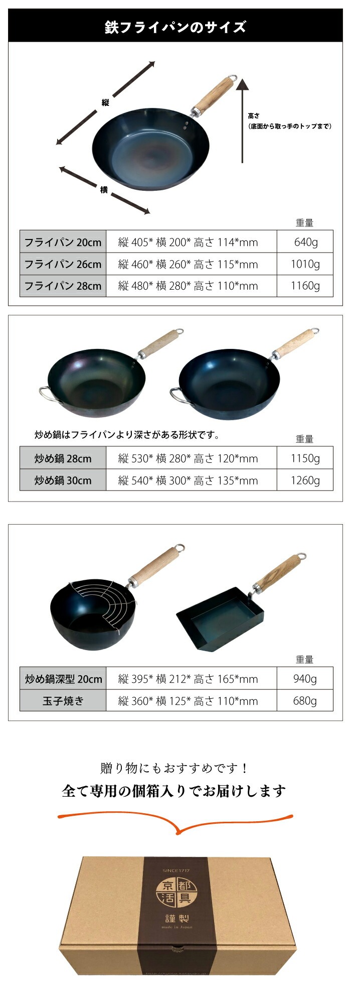 材質:鉄製(普通鋼板)表面:ハードテンパー加工取手:木製(天然木)