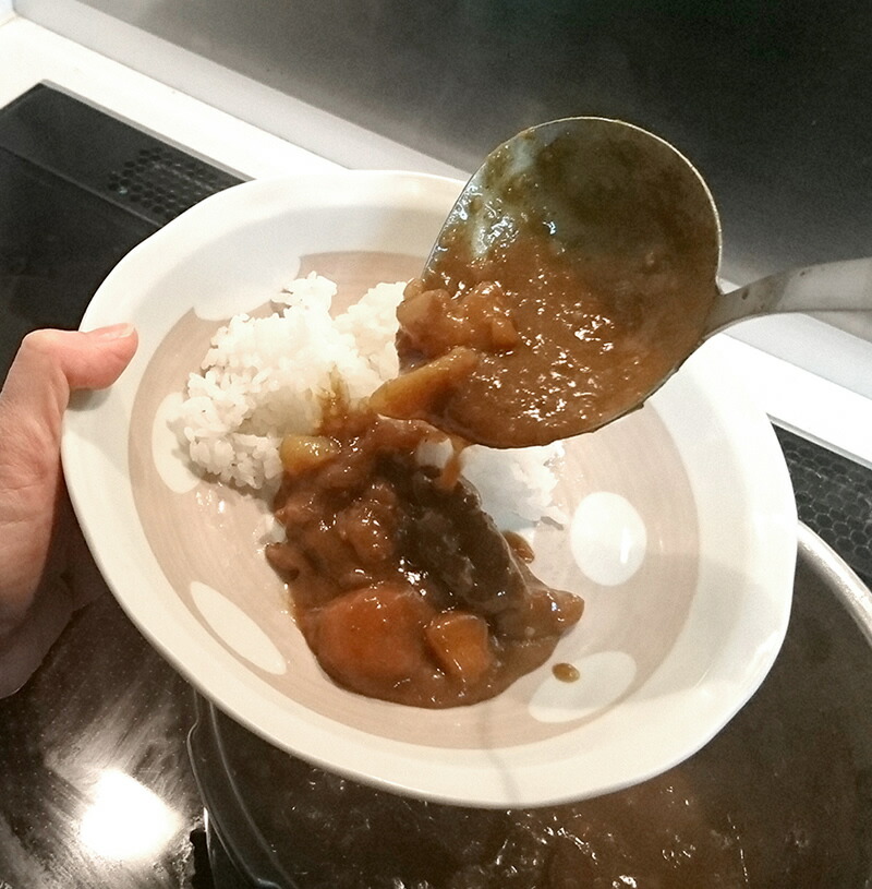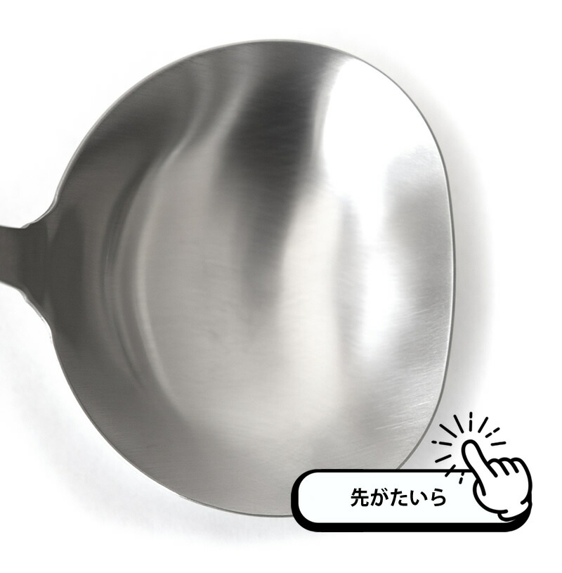 先が平らな独自形状で隅の具材もすくいやすい。