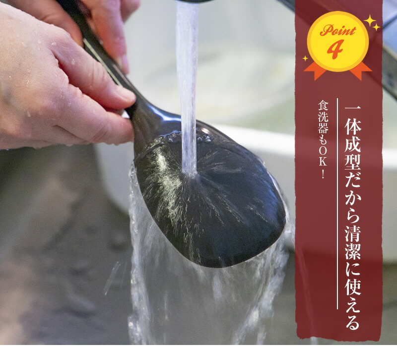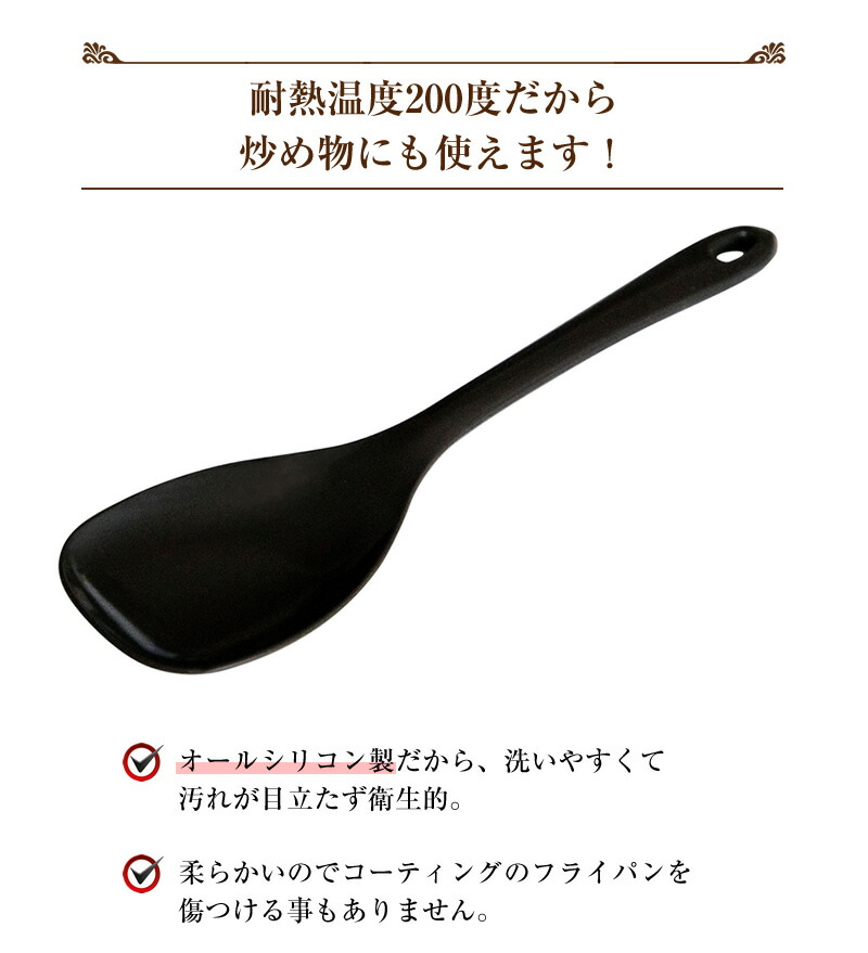 継ぎ目の無いオールシリコン製だから、洗いやすくて、汚れが目立たず、衛生的。柔らかいのでコーティングのフライパンを傷つける事もありません。