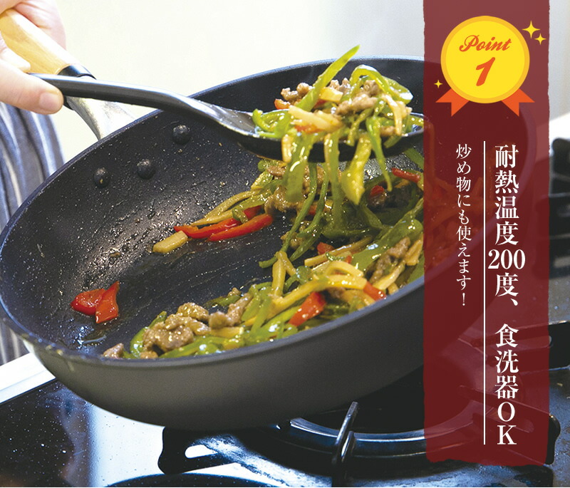 耐熱温度200度なので、フライパンでの炒め物に使えます。