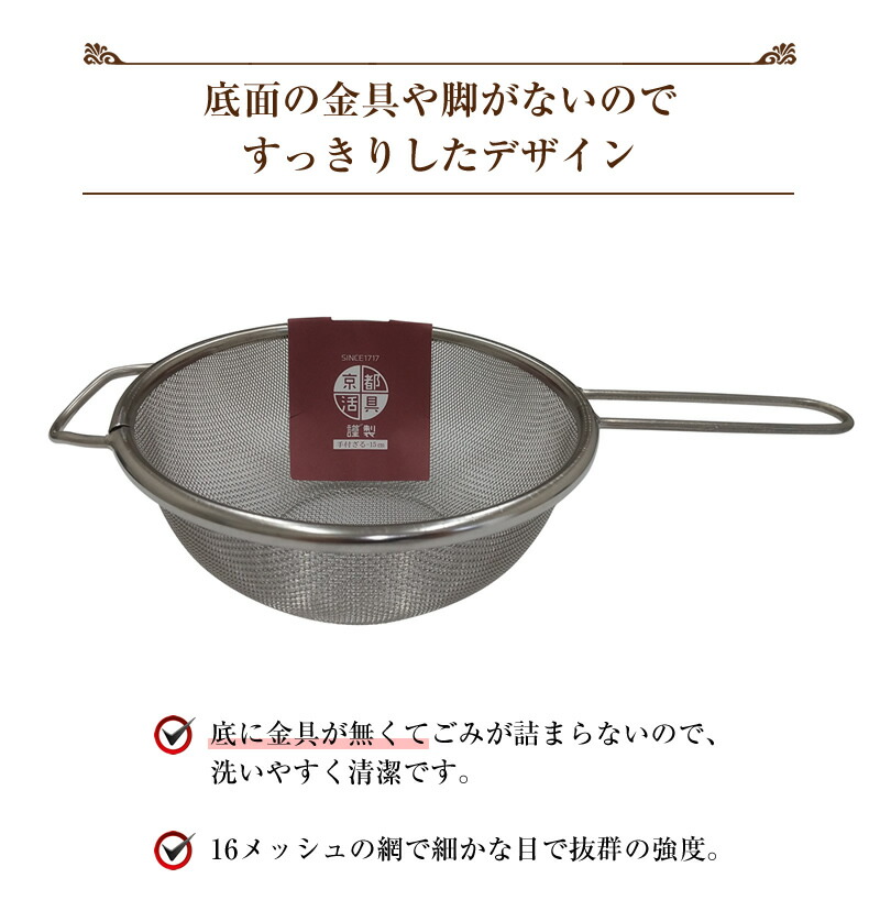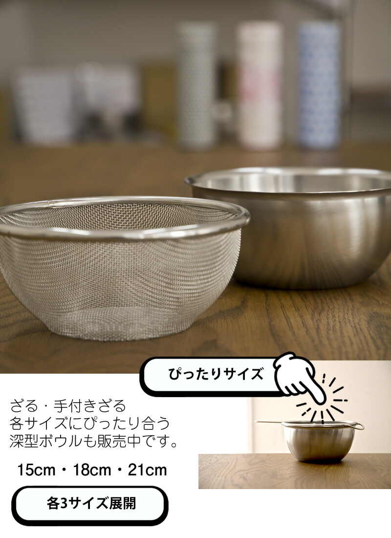 ざる | 京都活具 | 手付ざる 15cm 18cm 21cm ステンレス製 ザル 水切り ボウル キッチン用品 調理器具 日本製 おしゃれ ギフト プレゼント キッチン用品便利グッズ キッチン用品・調理器具取扱説明書