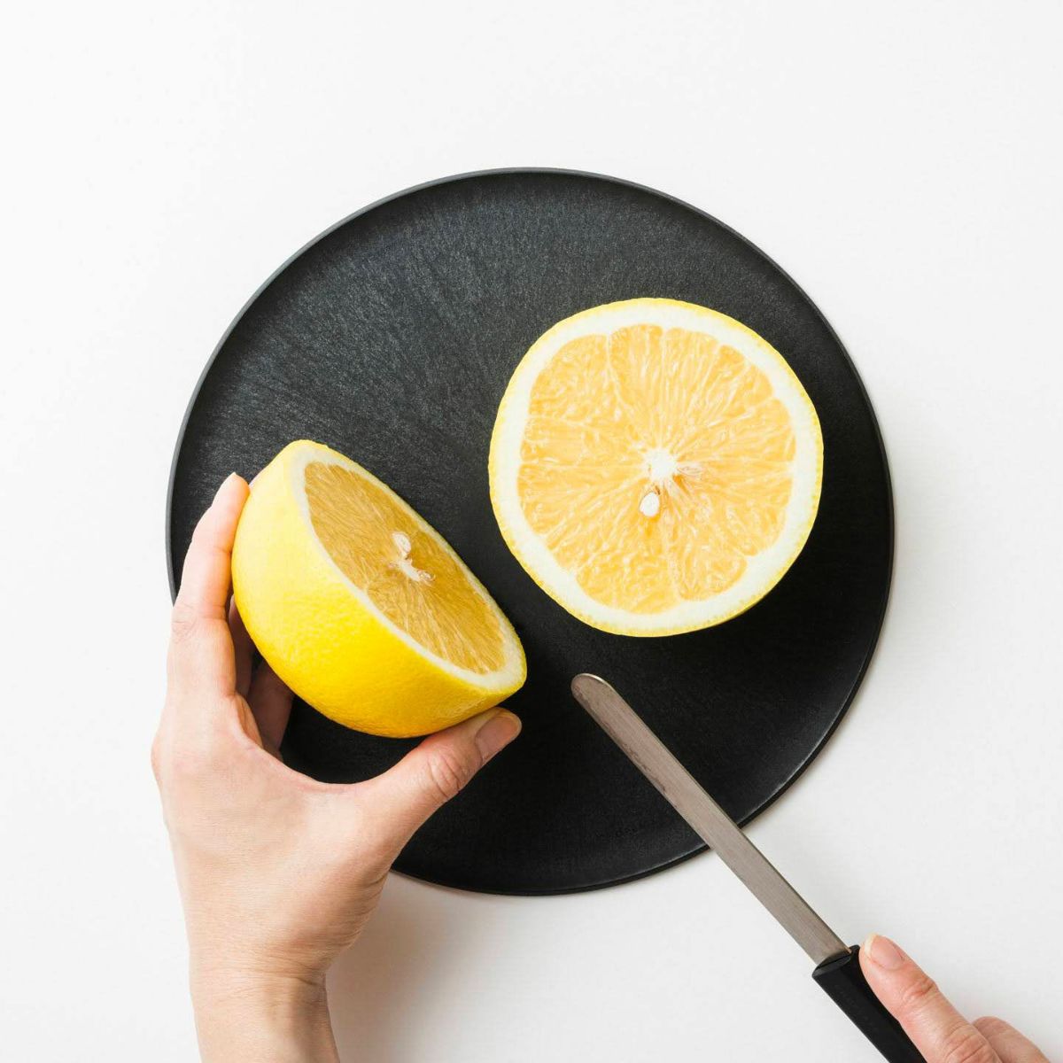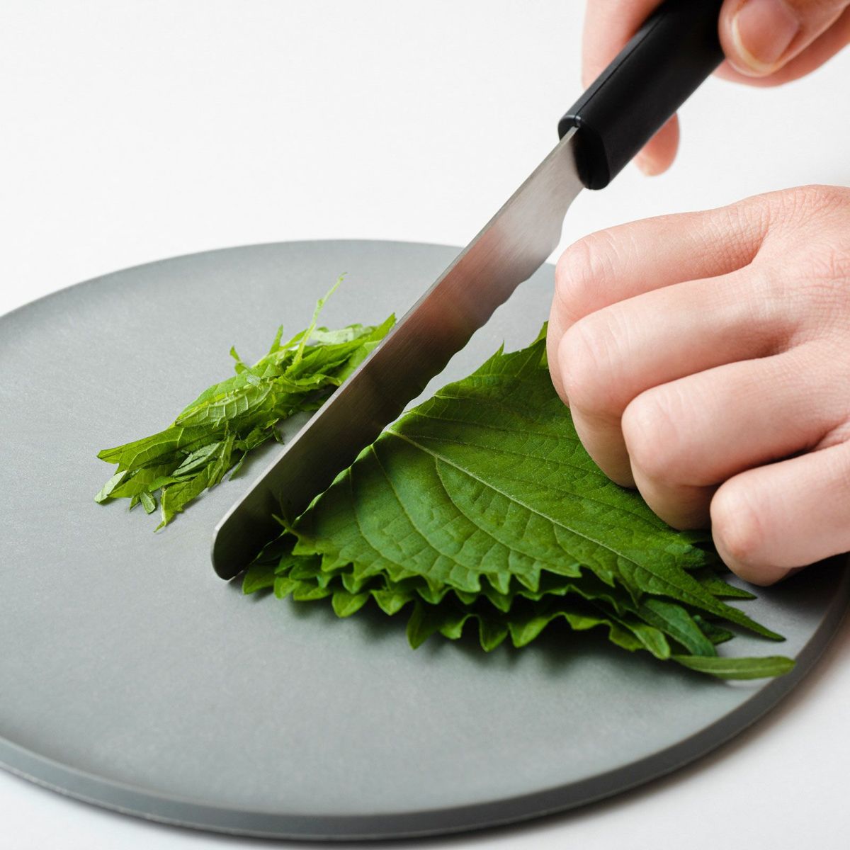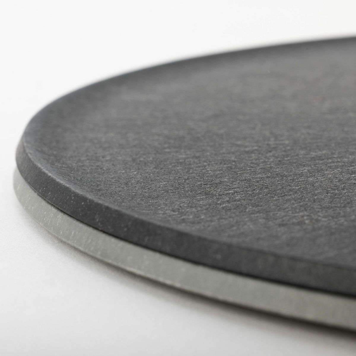 「皿として扱いやすく、まな板としても成立するよう、僅かな曲面を縁に施しました。液体が滴れることなく、食材をカットするときにも包丁が引っかかりづらい最小限の高さに設計しています」