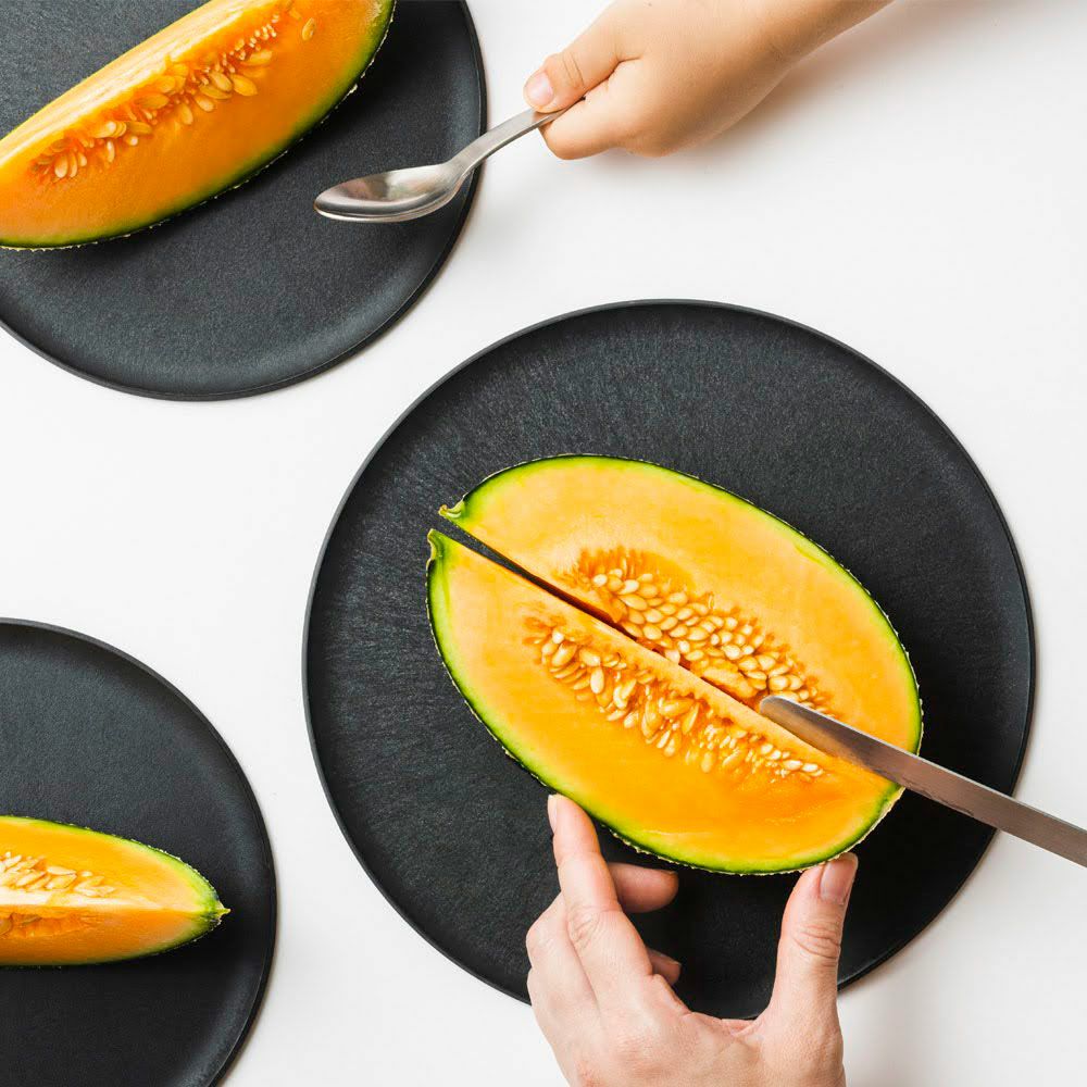 縁の高さにこだわって設計されているので、お皿の上でもナイフが使いやすく、フルーツをカットしてもちょっとした果汁であれば下に零れ落ちる心配はありません。食洗器やレンジにも対応する実用的なお皿は、高い強度を誇るのに軽量。しっかりした質感で丈夫なのにかさばらないお皿は、ピクニックやキャンプといったアウトドアのお供にぴったりです。