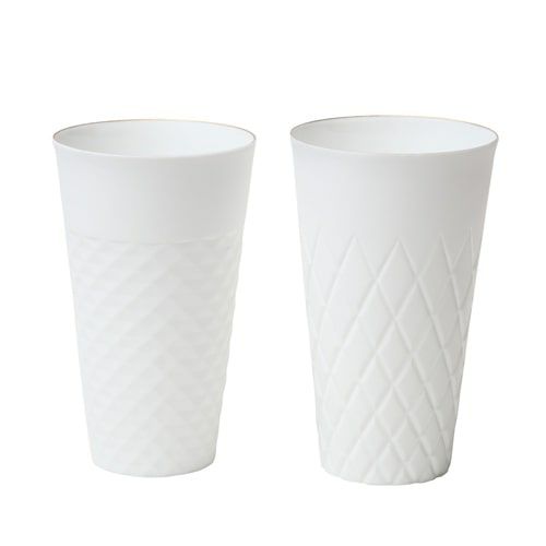 やま平窯元のものづくりを代表する商品が、厚さ1mmの真っ白な磁器「エッグシェル」シリーズです。エッグシェルの原型となったのは、江戸時代から明治にかけて日本で作られていた「卵殻手」と呼ばれる磁器。当時、その多くが西洋に輸出され、薄くて丈夫なことから「エッグシェル」と呼ばれ絶賛されました。やま平窯元では、第一次世界大戦を機に生産が途絶えた幻の「卵殻手」に着目し、有田焼の技法を駆使して現代によみがえらせました。透光性が非常に高く、飲み物を注ぐとその色がほんのりと透けて見えるほど。表面は繭のようにふんわりと柔らかく、口当たりの良さも大きな特徴です。