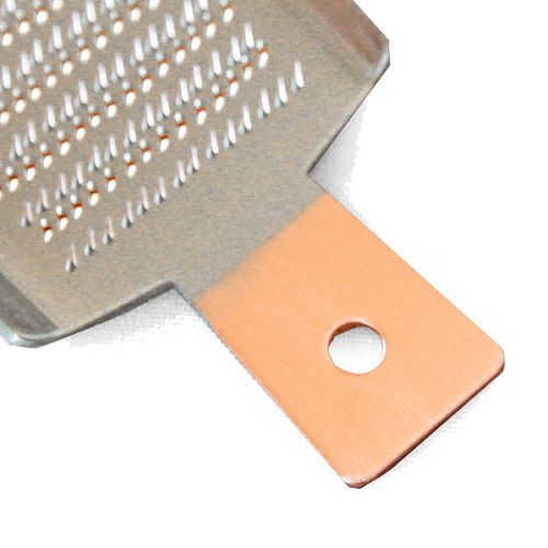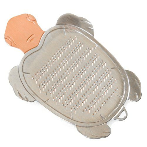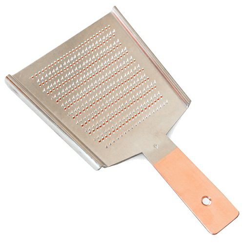 羽子板型が印象的な大矢製作所のおろし金。 羽子板型のおろし金の歴史は古く、1712年に編纂された江戸時代の百科事典『和漢三才図会』に 現在と同じ型の羽子板のおろし金が載っています。