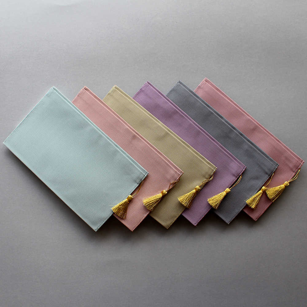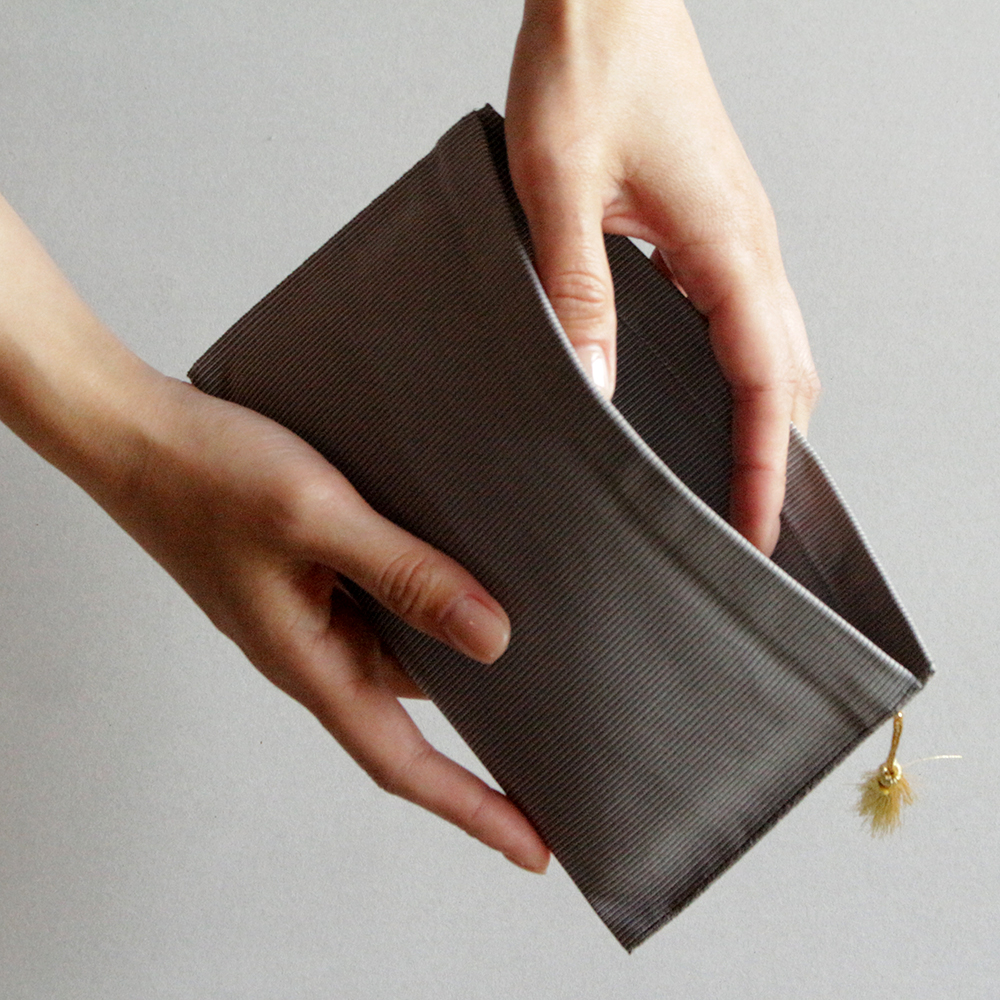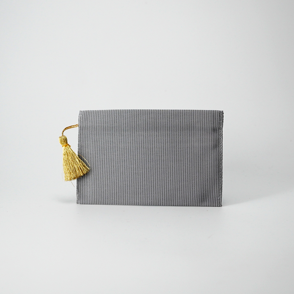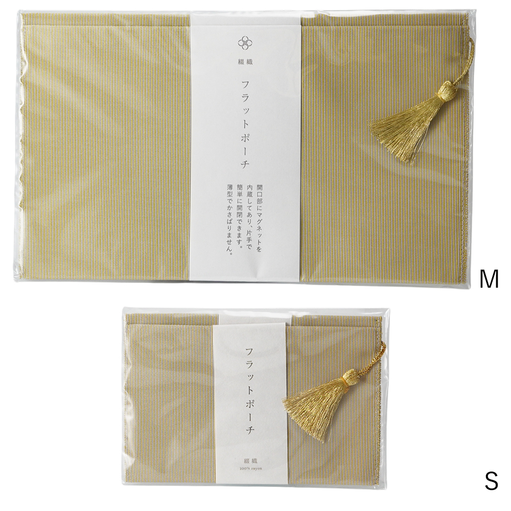 綴織ならではの美しいストライプが特徴の超薄型ポーチ。 薄さは、およそ「5mm」。 かさばらず、カバンの中の仕分けにも便利です。