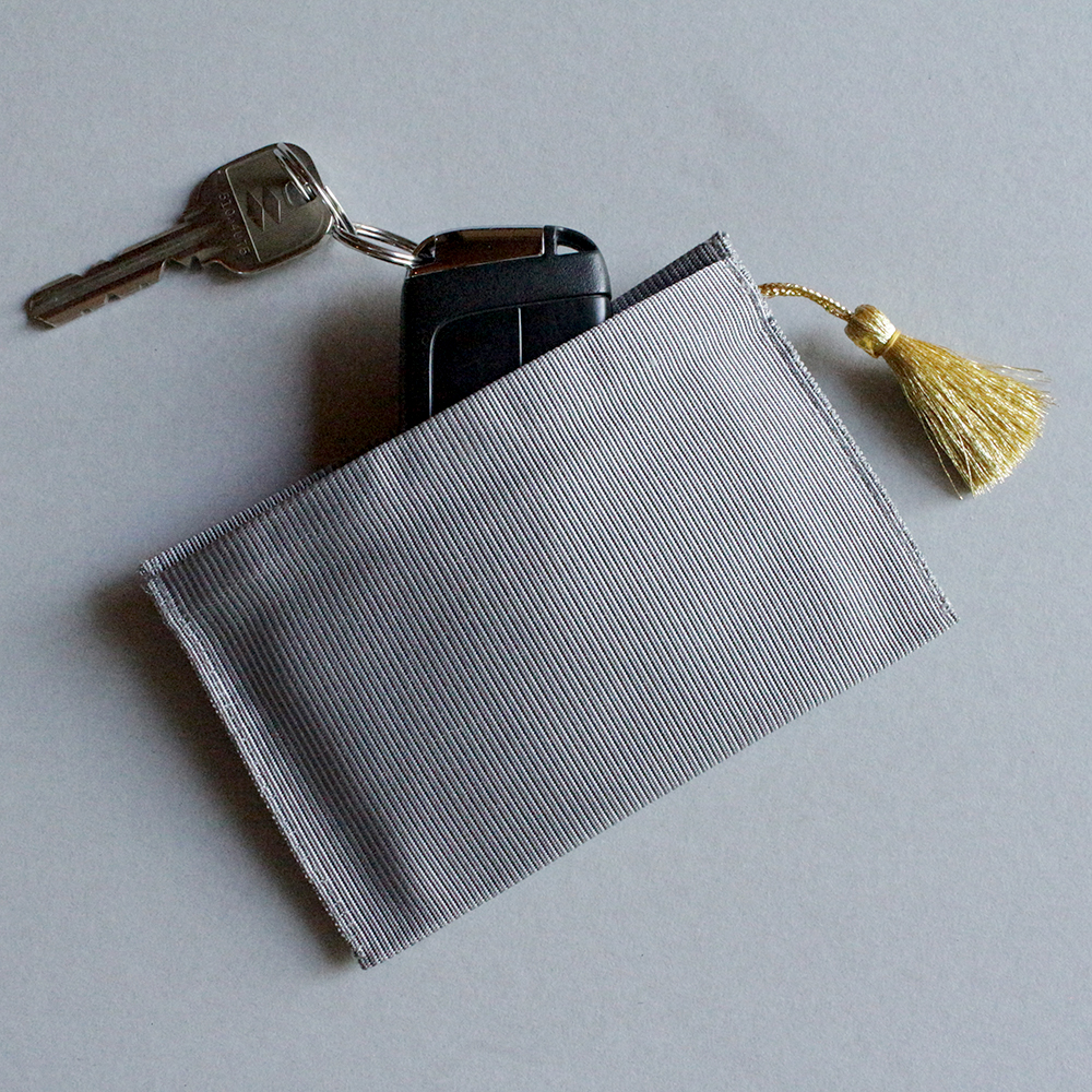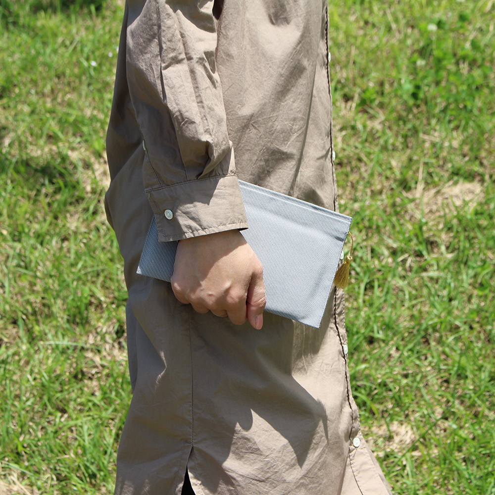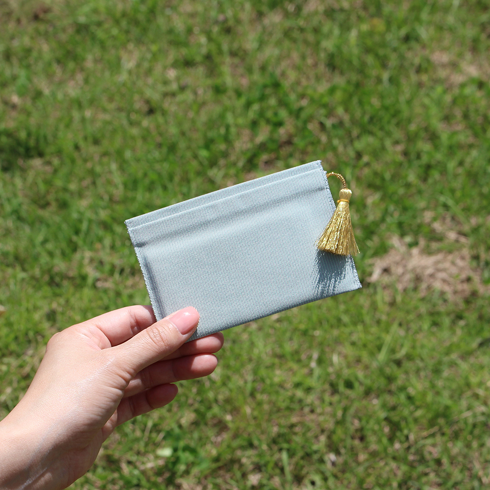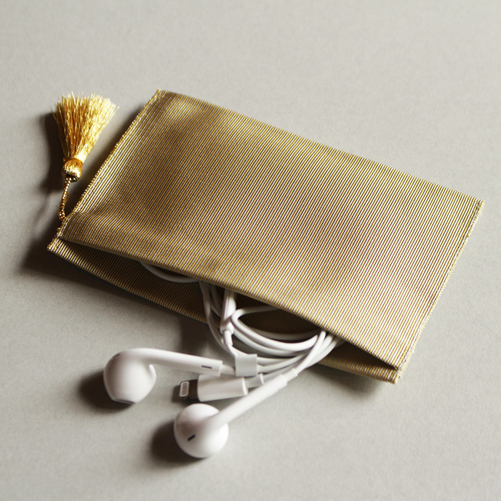 綴織ならではの美しいストライプが特徴の超薄型ポーチ。 薄さは、およそ「5mm」。 かさばらず、カバンの中の仕分けにも便利です。