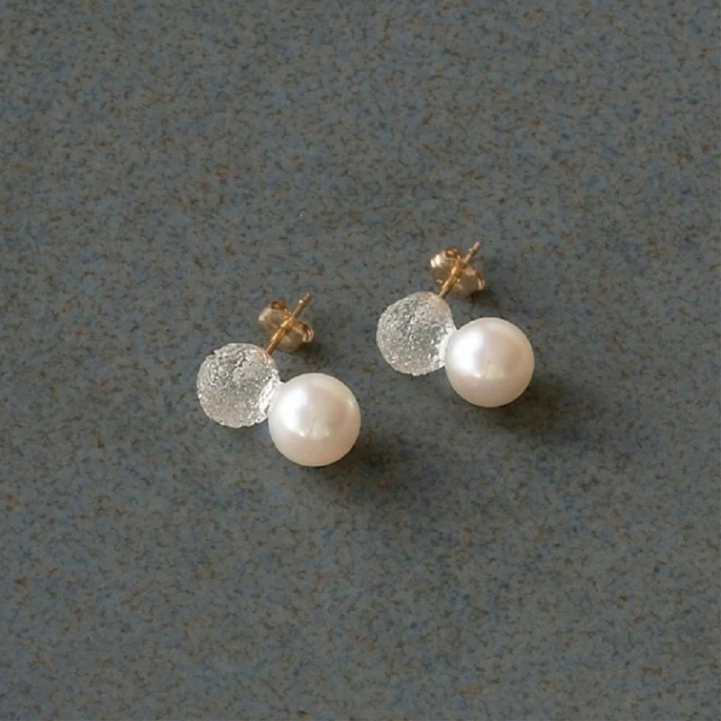 雪のように輝くガラスと優しい光沢の真珠が耳元をフォーマルな印象にしてくれます。