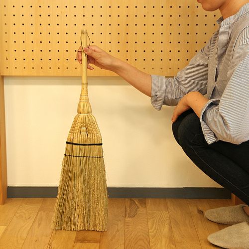 江戸箒はホウキモロコシという草が持っている、柔らかさと弾力を活かした穂先が特徴なので、ササッと掃きだす使用感が味わえます。