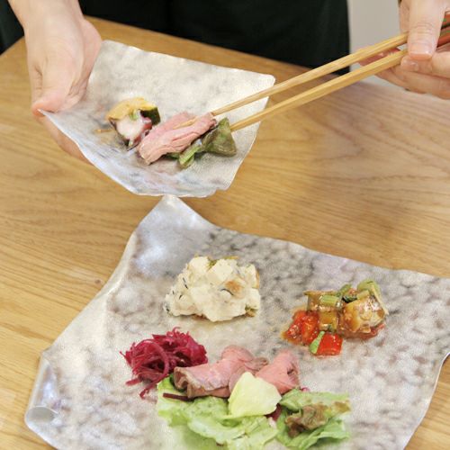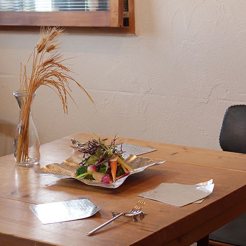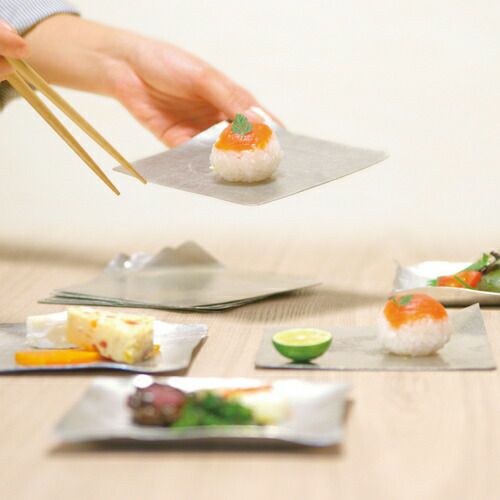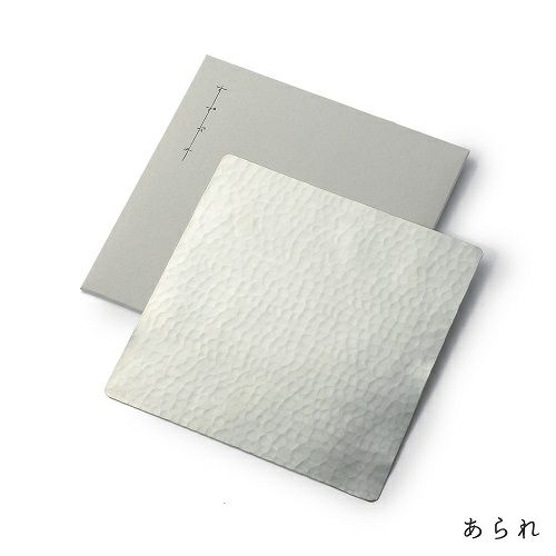 もともと冷たい印象を受けやすい金属ですが、こちらの「すずがみ」には、叩くことで生まれるぬくもりや、食卓に一枚あることで弾む家族の会話、子どもも楽しめる気軽さ、といった無限の可能性が詰まっています。
