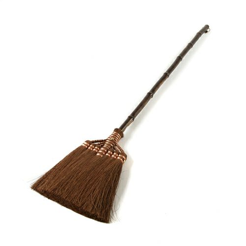 鬼毛は、通常の棕櫚に比べ、繊維をくしけずった状態になっているため、粉はほとんど出ないのが特徴です。棕櫚の細かい繊維が、畳の目や板の間の溝のほこりもかきだし、繊維の油分によって、ワックスとは違う自然なツヤ効果も出てきます。また、目に見えにくい小さなほこりも舞い上がらずにお掃除できます。箒はもちろん、電気を使わず狭い場所のほこりのはきだしも楽々でき、さらに電気を使わないため環境にも優しい生活工芸品です。