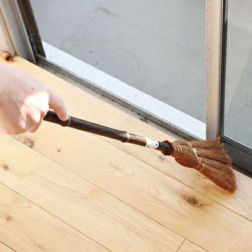 • 天然の棕櫚の皮を使用しているため、使い始めほうきから棕櫚の粉が落ちてきます。出来るだけ最初に粉を落として頂けると使いやすくなります。