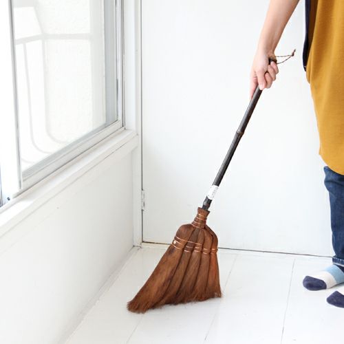 • 天然の棕櫚の皮を使用しているため、使い始めほうきから棕櫚の粉が落ちてきます。出来るだけ最初に粉を落として頂けると使いやすくなります。