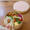 電子レンジ対応なので、温めOK。木の香りに包まれたおいしいごはんと、かわいいカラーのお弁当箱で気分がぱっと上がります。