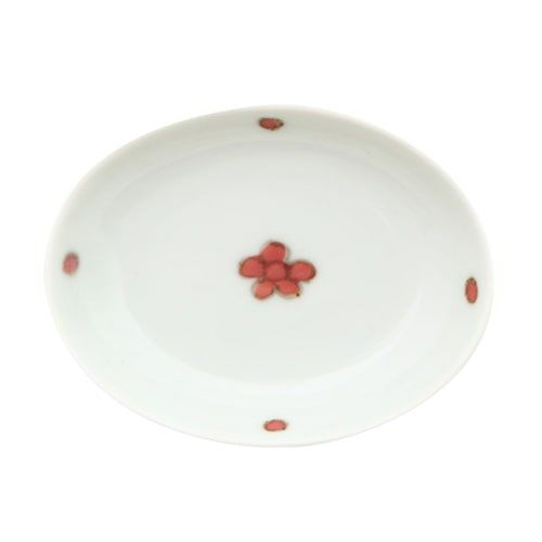 【そうた窯(そうたがま)】染付 赤小花紋 楕円姫小皿/佐賀県