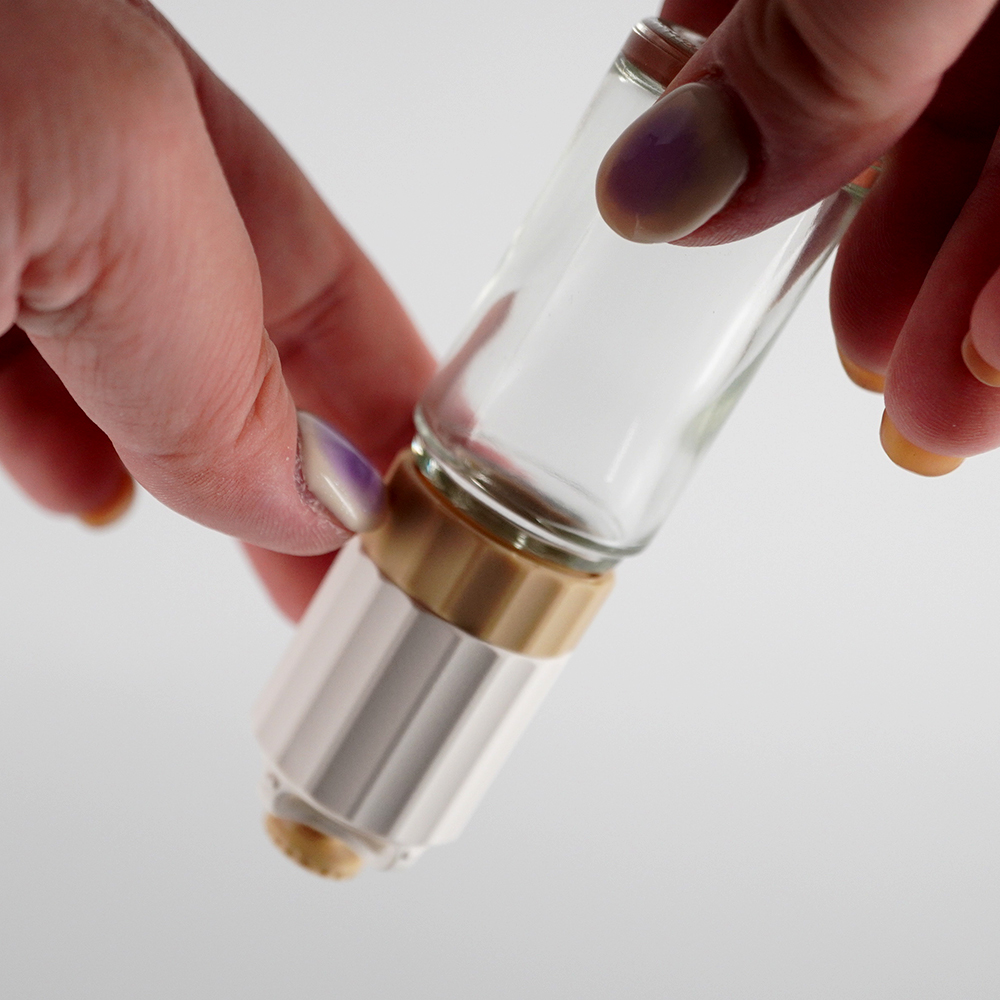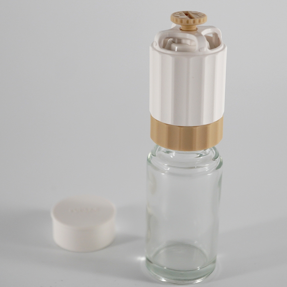 このとき、ミル本体をきちんと取り付けていないとガラス壜が外れるので奥までしっかりと取り付けてください。