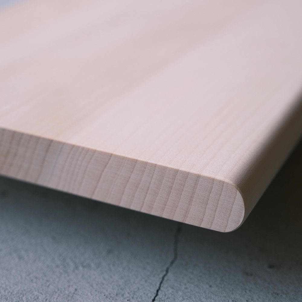 MANAITA - 贈るまな板 - は結婚祝い、両親贈呈品、新築祝い、誕生日祝いなど、特別なシーンにふさわしい贈り物として最適な逸品です。その一枚一枚は、樹齢100年以上のいちょうの大木から切り出され、日本に数人しか存在しない木挽き職人が厳選した材を使用しています。貴重な「柾目材」を用いることで、包丁の刃当たりが均一で反りにくい特性を持ちます。いちょうの木は油分が多く水はけが良いため、乾燥が早く清潔に保てます。使用するたびに刻まれる刃跡も、洗う際に水に晒すことで復元され、長く使うことができます。表面はしっとりとした柔らかなざらつきがあり、食材や包丁が滑らず、細かな食材もしっかりと切れます。また、いちょう特有のクッション性により、包丁の刃こぼれや腕への負担も軽減されます。無垢材ならではの心地よい音が響き、毎日の料理時間をさらに楽しくしてくれます。サイズはS(W310 × D190 × H25 mm)、M(W360 × D220 × H25 mm)、L(W420 × D260 × H25 mm)の3種類をご用意。大切な人への贈り物として、毎日の食事作りに心を込めて、この樹齢100年のいちょうのぬくもりをお届けします。