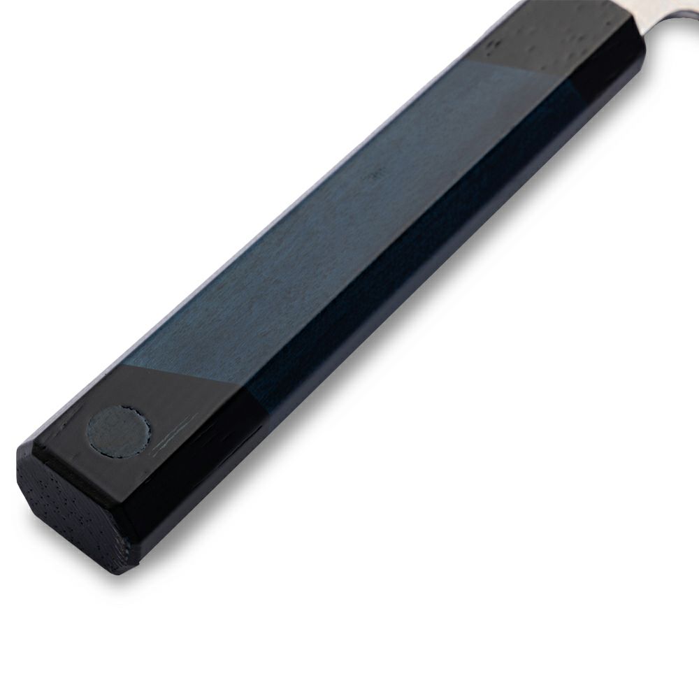 刀身はステンレス製の堺打刃物を採用。切れ味鋭い炭素鋼に近いステンレス鋼(銀紙三号)は、熱処理が極めて難しいことから、主に堺でしか取り扱っていない希少な商品です。鍛冶師、刃付け師ともに1日10本程度しか生産できないため価格はやや張りますが、最後の最後、短くなるまで使えるので 費用対効果が高く、環境にも優しいといえるでしょう。