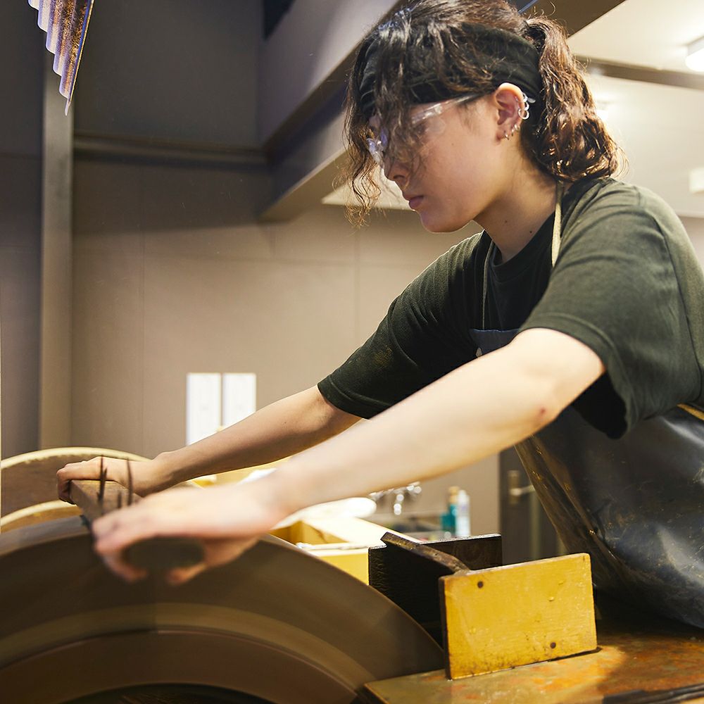 「包丁づくりは楽しくて1日があっという間です。この業界は男性基準のものが多いので、教えてもらったことをそのまま採用するのではなく、自分なりに試行錯誤しています。女性ってだけで『やれるの?』と言われることもあるけれど、負けませんよ。負けん気は強いんです(笑)」