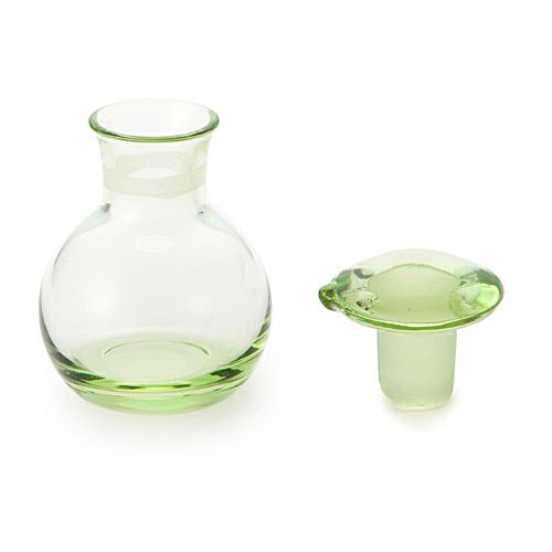 石英玄武岩そのままの淡く繊細な緑色をした萩ガラスの後漏れしないよう、密閉性の高い一番人気の醤油さし。