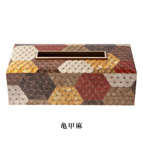 インテリアのアクセントになる寄木細工のモダンなティッシュケース。