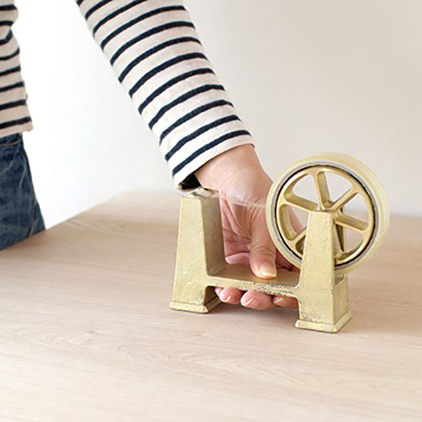 富山県高岡市にて120年以上の歴史を持つ真鍮鋳物メーカー「二上」が手がける生活用品ブランド「FUTAGAMI(フタガミ)」。その中でもひと際存在感を放つ、真鍮無垢のテープカッターです。