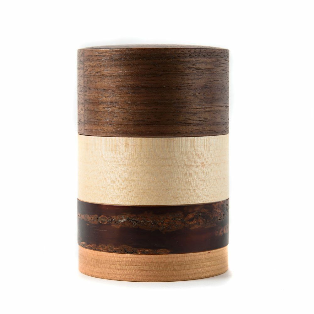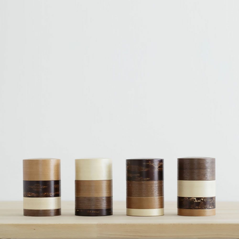 自然そのままの形を実用的な品質を保ちながら再現する、角館伝四郎のプロダクト 【角館 伝四郎(カクノダテデンシロウ)】輪筒 茶筒 くるみ(樺細工)/秋田県