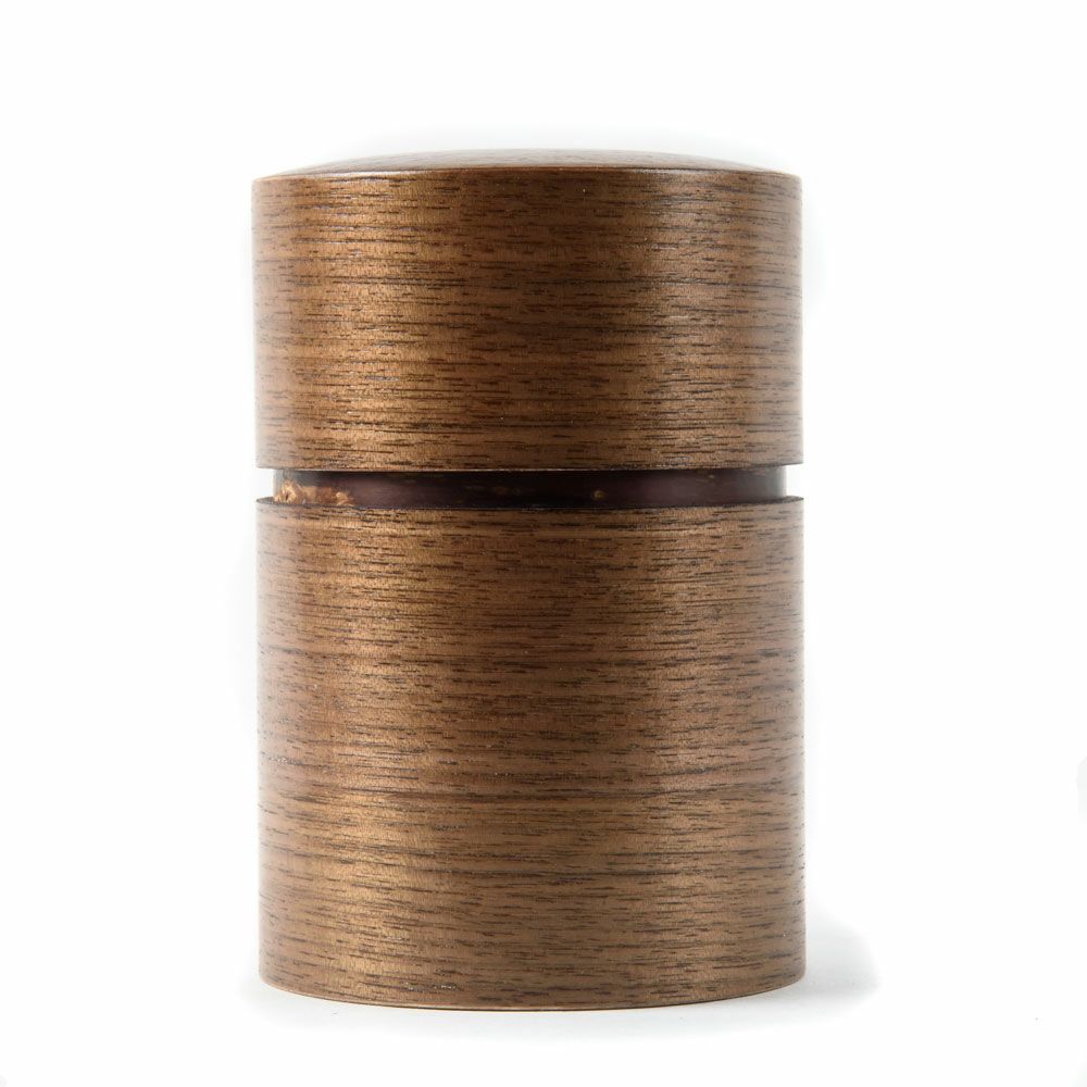 帯筒は、蓋を短くすることで、内側の樺を、帯のように覗かせました。外側は桜皮ではありませんが、内側は桜皮で作られているので、殺菌効果や密閉性はこれまでどおり優れています。 もちろん茶葉だけでなく、紅茶やコーヒーを入れてもOK。