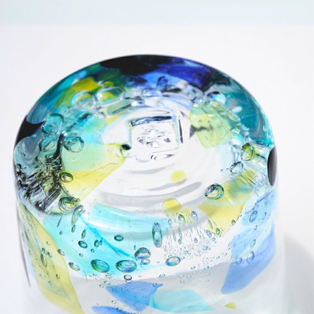 手元に広がる青の世界、琉球ガラスのアート『アクアリーフ広口小』