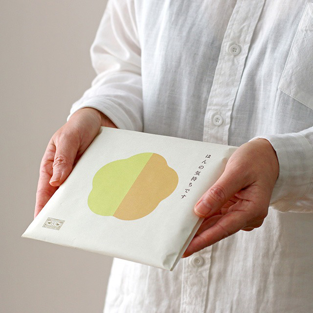 ちょっとしたごあいさつの気持ちに添えた形を、パッケージにあしらったかや織ふきんです。