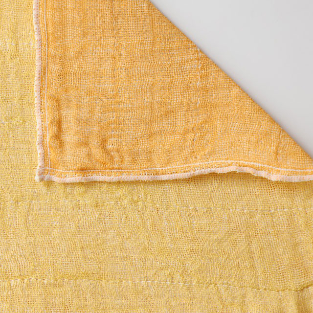 奈良の工芸「かや織」は、約1700年前に奈良に技術が伝わった「蚊帳(かや)」に使われる、風は通すが蚊は通さない目の粗さの薄織物です。5枚重ねで縫い合わせたふきんは使うほどにやわらかくなり、吸水性に優れ、丈夫で長く使うことができます。