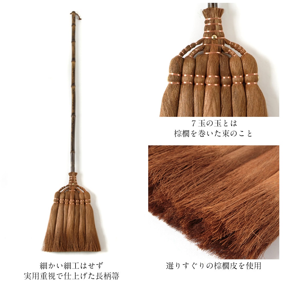 材質 7玉長柄箒:棕櫚(毛)、竹(柄)、銅線(巻き線)、はりみ:和紙(柿渋仕上げ)/ 竹