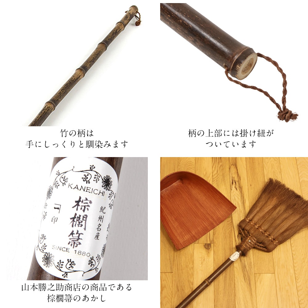 玄関やお部屋用、リビングなど万能の長柄箒と「はりみ」のちりとりの、とても便利なオススメの2点セットです。棕櫚ほうきのライフスタイルをたっぷり楽しみたい方に是非おすすめです。はりみには棕櫚の紐が付いています。