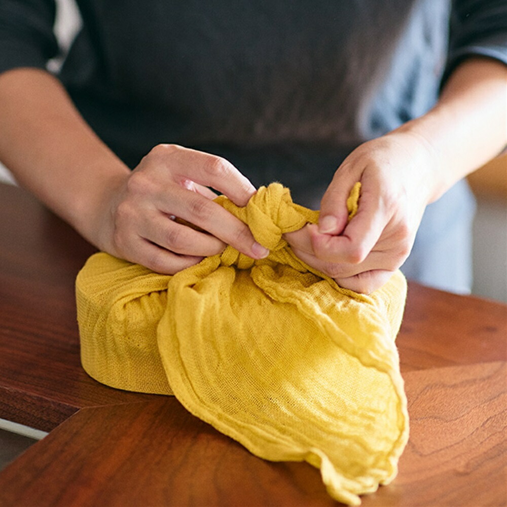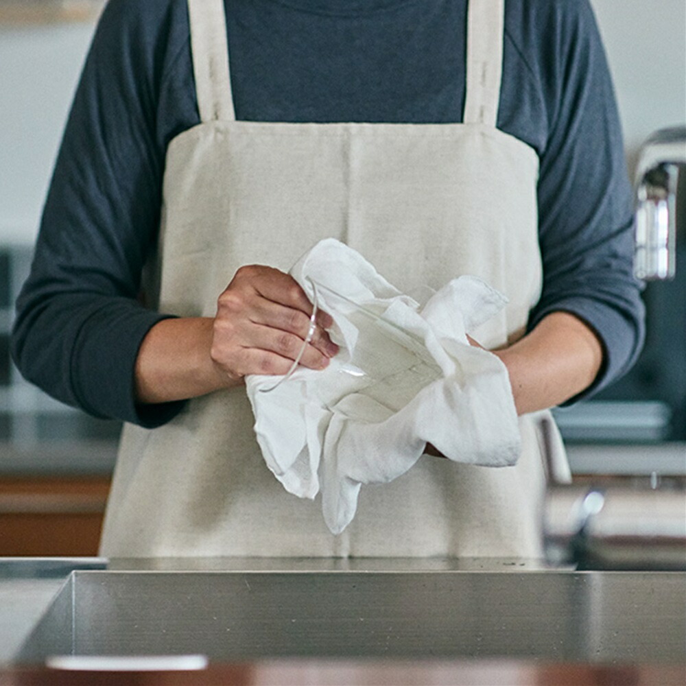 奈良の特産品である蚊帳(かや)生地を活かして作られた、中川政七商店のロングセラー「花ふきん」。 大判で薄手のため、吸水性・速乾性に優れており、食器拭きや出汁こし、野菜の水切りなど、台所のあらゆるシーンで大活躍します。