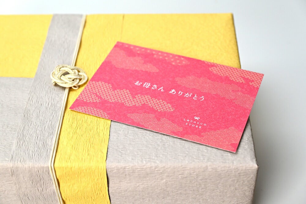お誕生日やご結婚、出産のお祝いなどに、ギフトラッピングを無料で承ります。箱が付属している商品には包装紙、それ以外の商品には平袋でお包みさせていただきます。 シーンに合わせたメッセージカードや熨斗もお選びいただけますので、大切な方への贈り物にぜひご利用ください。