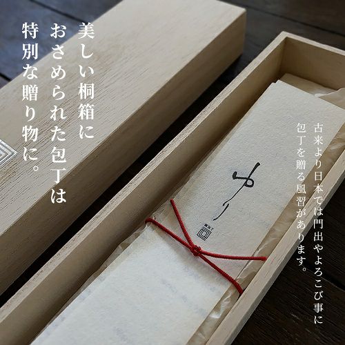 美しい桐箱におさめられた包丁は特別な贈り物として、喜ばれること間違いありません。