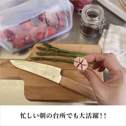 切れ味や使い心地、お手入れのしやすさなど、包丁としての機能も素晴らしいうえに、引き付けられるその美しいデザイン、手に取って食材を切ってみたいと思わせる魅力が詰まっています。